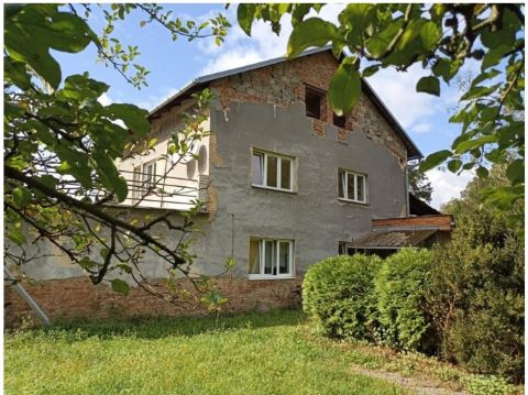 Jedná se o částečně podsklepenou stavbu rodinného domu o dvou bytových jednotkách se samostatnými vchody. Dům má dvě nadzemní podlaží a půdní prostor. Půdorys je nepravidelný, část střechy, je sedlová, ostatní části střechy jsou pultové. Rodinný dům je napojen na el. proud, na veřejný rozvod vody. Odpadní vody splaškové jsou svedeny z každé bytové jednotky do vlastní žumpy. Vytápění je ústřední s kamny na tuhá paliva. Schodiště do 2.NP je dřevěné. Stavebně technický stav domu je velmi špatný. Dům je v záplavové oblasti stoleté vody. Příslušenství tvoří vedlejší stavby vhodné k odstranění - přístřešek a kotec pro psy, 2 žumpy, vodovodní přípojka a oplocení, vrata a vrátka.