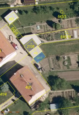 plánu se jedná o pozemek s možností zastavění řadovou garáží. Hranice parcely byla již v minulosti